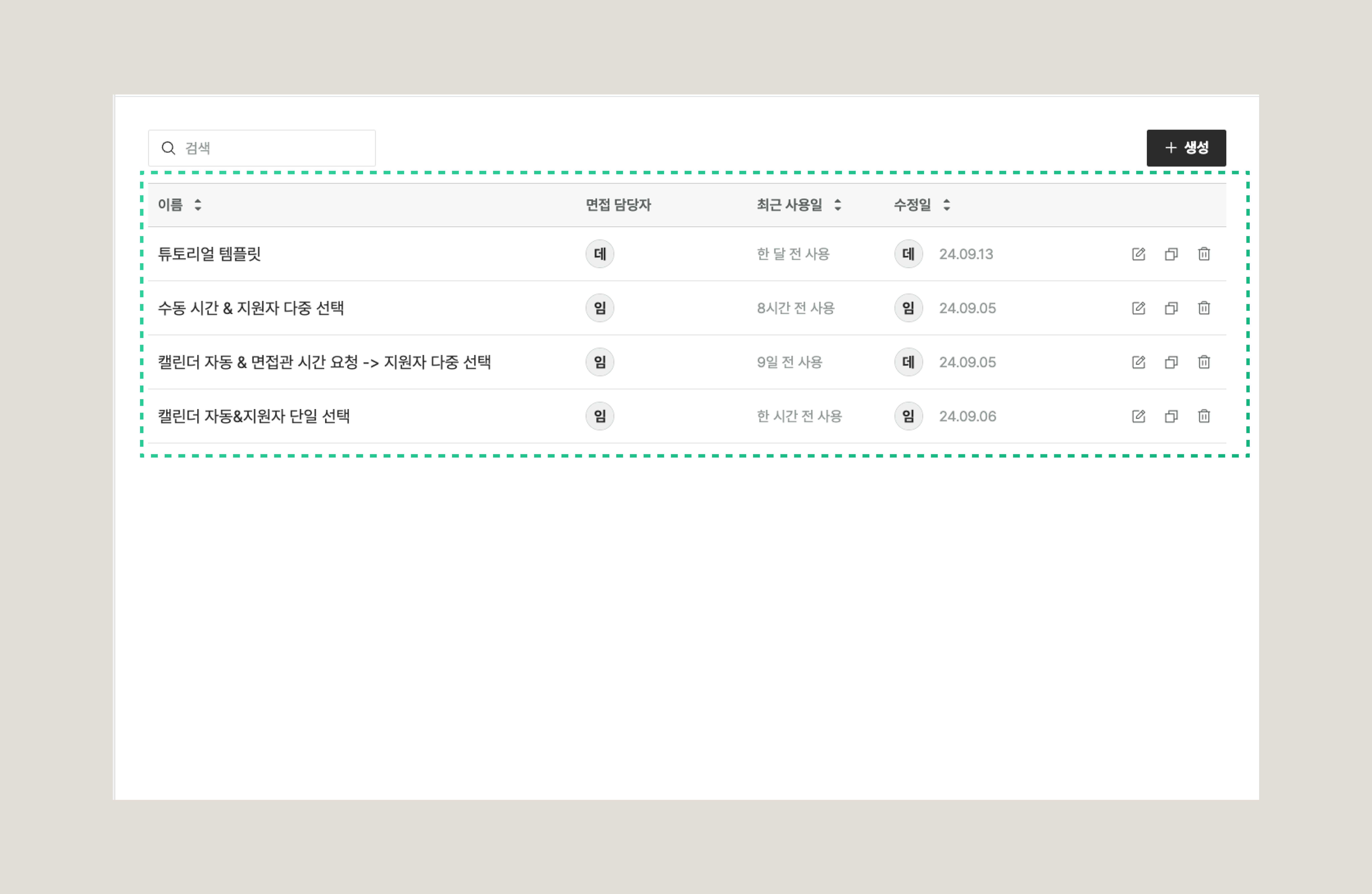 > 설정 > 템플릿 > 면접 템플릿을 선택합니다.