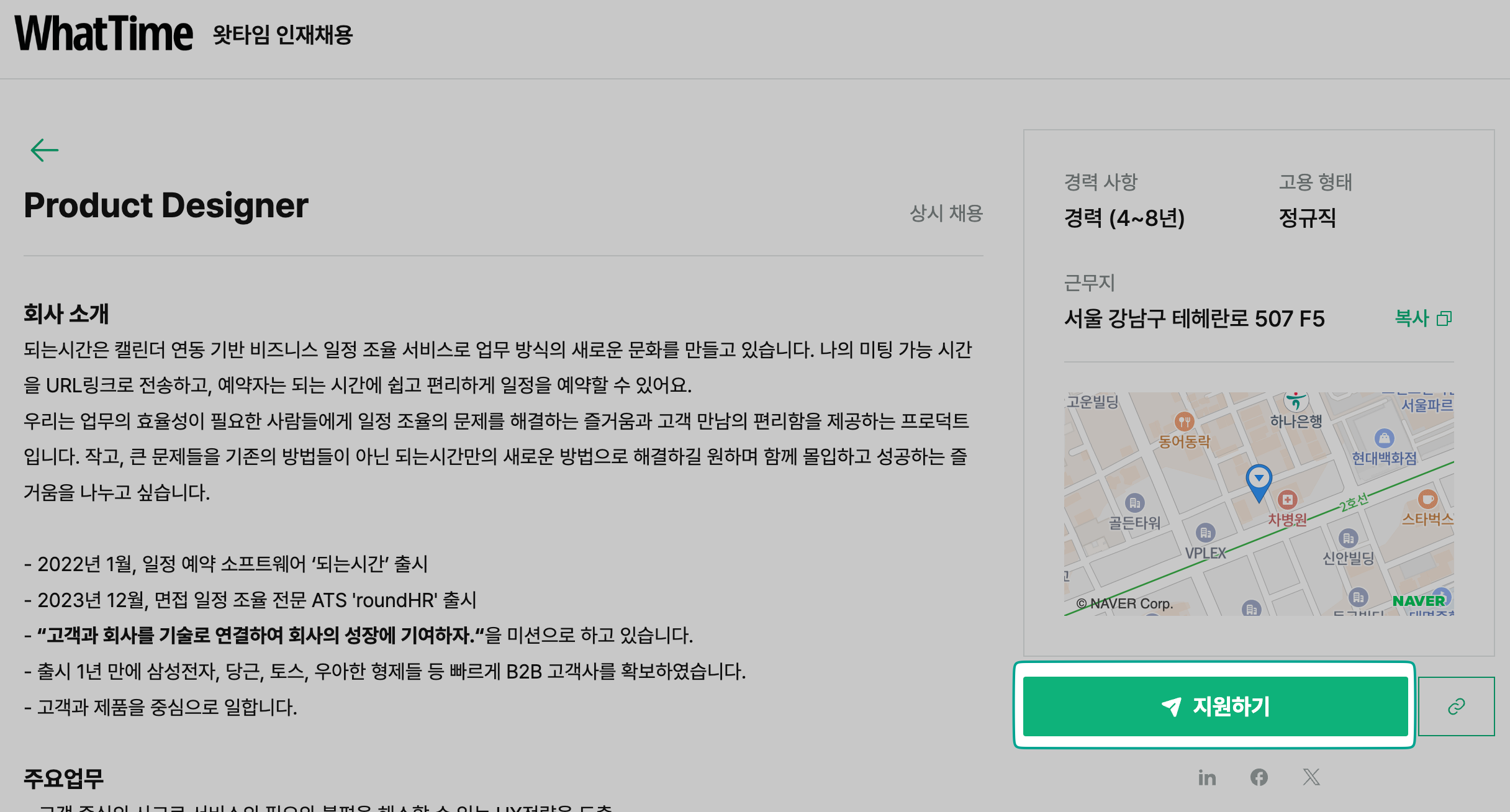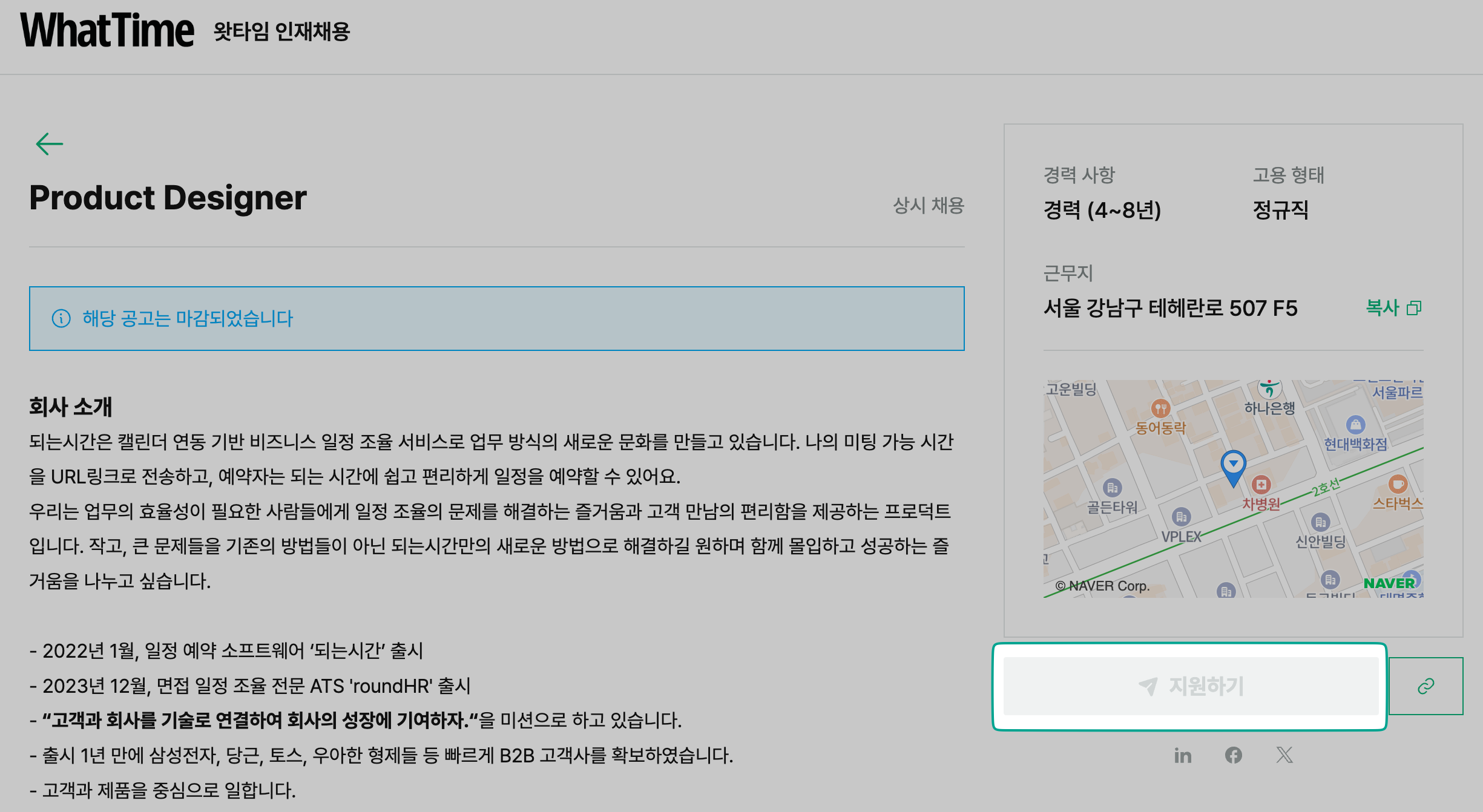 * **비공개 채용 지원:** 비공개 상태에서도 링크를 통한 지원이 가능하여, 특정 대상만 모집할 수 있습니다.