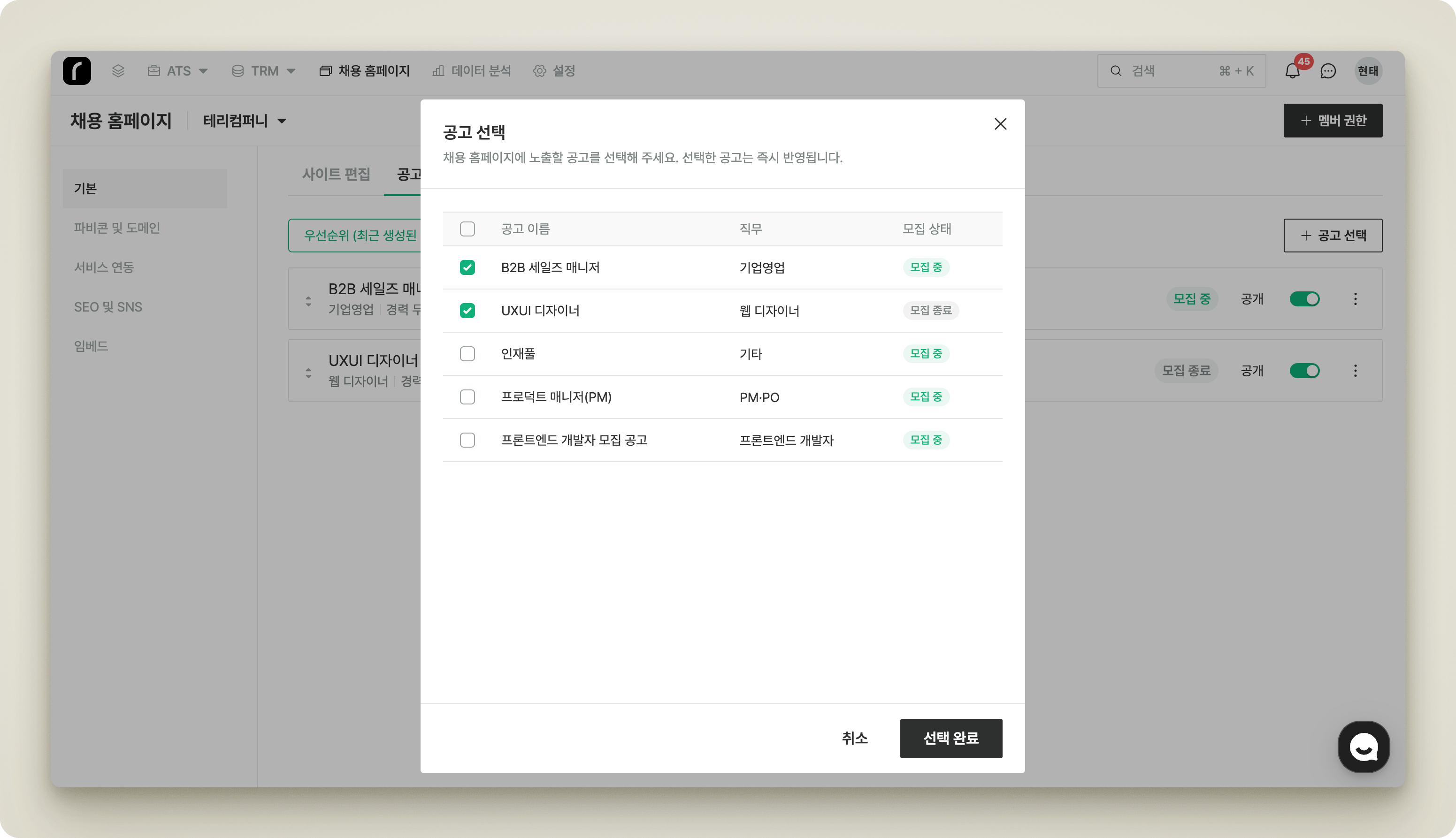 * **즉시 반영:** 설정 변경 즉시 채용 홈페이지에 반영됩니다.