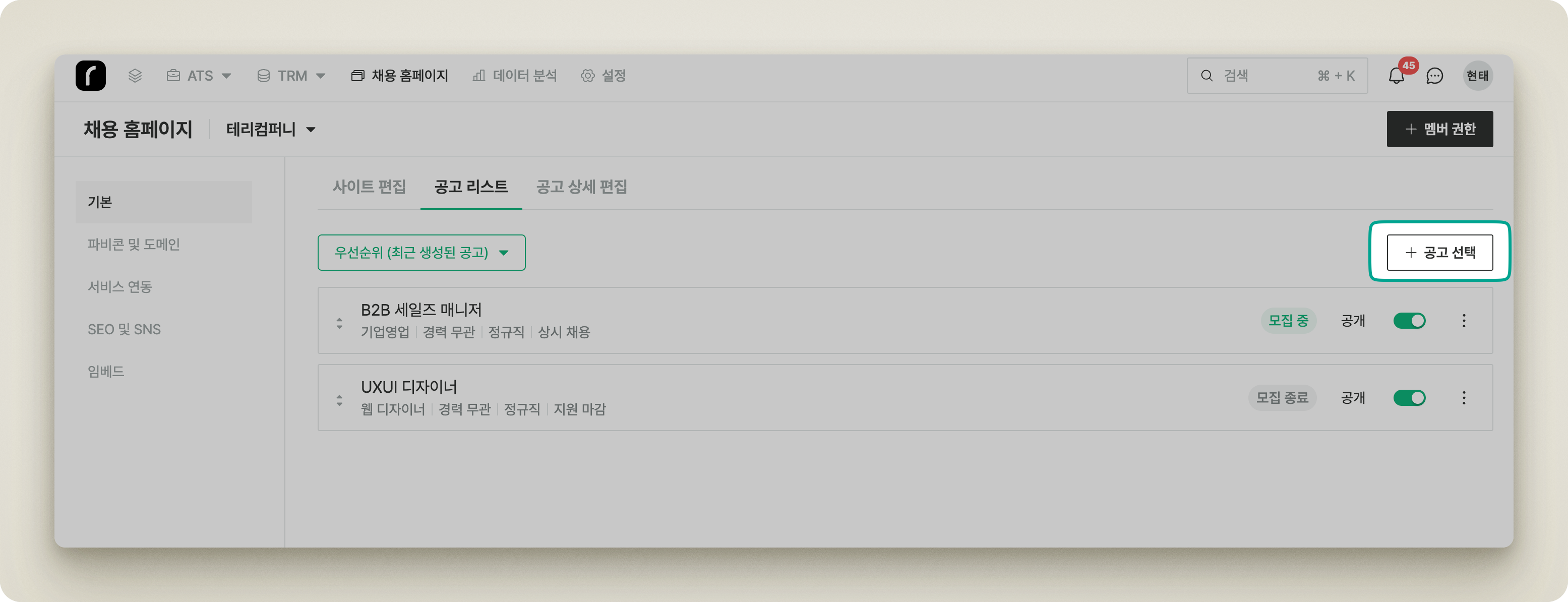 # 채용 공고 게시 설정